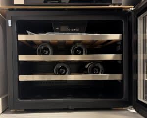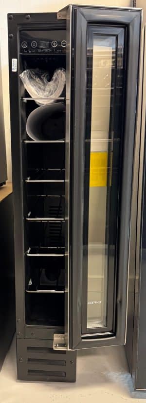 vwc7sbOBS. Dette er en udstillingsvare – dvs. den er uden original indpakning og står i butikken til syne for kunden. Der kan forekomme små ridser og buler. Leveres på Bornholm for 99 kr. Skal varen sejles/leveres uden for Bornholm bør man kontakte butikken for nærmere leveringspris. Ultra smalt og funktionelt vinskab. Perfekt til dig, der ønsker den helt rette opbevaring af dine vine, men som ikke ønsker at det fylder for meget.
